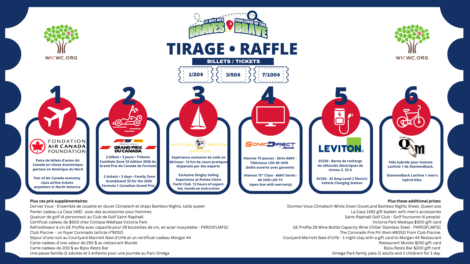 Participez à notre tirage publique au profit du Centre de bien-être de l’Ouest-de-l’Île pour les personnes atteintes de cancer, un organisme de bienfaisance enregistré qui offre des soins et du soutien avec compassion à toute personne vivant avec le cancer—que ce soit pour elle-même ou pour soutenir un proche touché par la maladie.